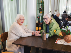 Marco en zijn collega Angela Kroon vormen de verbindende schakel tussen de vier partners. Ze helpen de bewoners met het bouwen van een gemeenschap. Een groep van zo’n vijftien bewoners is hier actief mee bezig. Een van hen is Ray die sinds tweeënhalf jaar met zijn vrouw Norma in de woontoren woont. ‘We hebben een uitgebreid activiteitenprogramma. Je kunt hier biljarten, er is een breiclub, een schilderclub en we doen spelletjes, zoals kaarten. Elke eerste zondag van de maand koken een paar van ons en eten we samen. Veel bewoners kennen elkaar en er is altijd wel iemand om samen mee te kletsen of iets leuks te doen.’