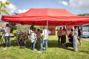 Eigen Haard en de gemeente investeren ook in de leefbaarheid van de buurt. Dat is voor de komende 10 jaar vastgelegd in een sociaal pact. Imke Veltmeijer, projectontwikkelaar bij Eigen Haard, licht toe: “Om prettig te wonen heb je meer nodig dan alleen een kwalitatief goed huis. Daarom brengen we bewoners, ondernemers en partners in de wijk, zoals opbouworganisatie Eigenwijks, met elkaar in contact. Samen verbeteren we de sociale cohesie in de Dichtersbuurt. We stimuleren bewoners om zelf een bijdrage te leveren aan de buurt en ondersteunen hun initiatieven. Denk aan een wekelijkse buurtmaaltijd, een formulierencafé en prikacties, allemaal voor en door bewoners.”
