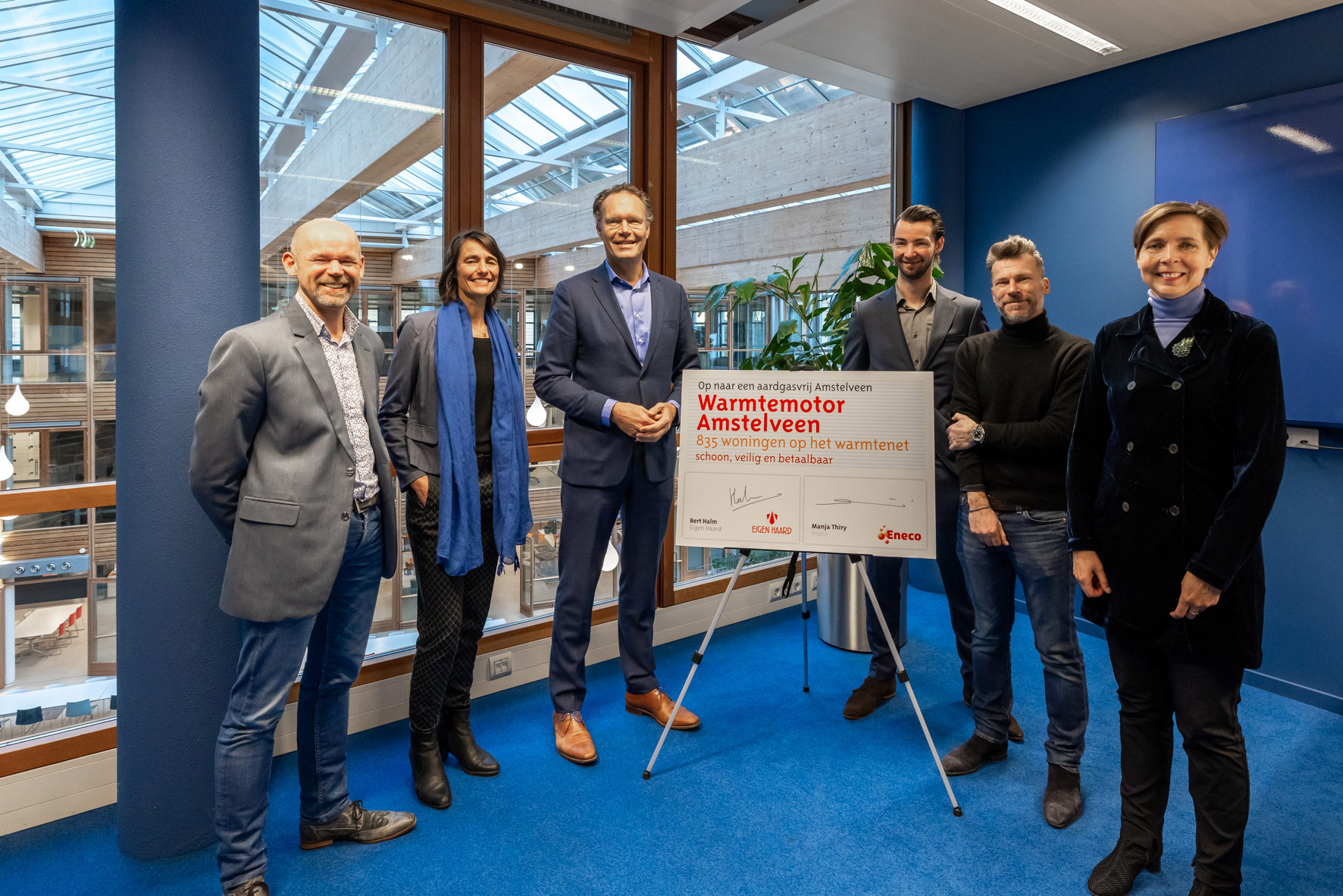 Samen met energiebedrijf Eneco willen wij de komende jaren honderden huishoudens in Amstelveen de kans geven om van het aardgas af te gaan. Wij hebben een contract ondertekend om 835 woningen aan te sluiten op het bestaande warmtenet van Eneco.
