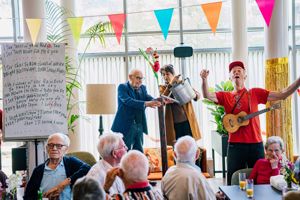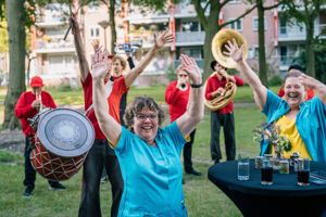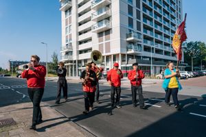De langstzittende bewoner, meneer Spoel (91 jaar oud), deed samen met nieuwe bewoonster mevrouw Aisha de openingshandeling. Bij de opening waren ook onze partners van Dock, Evean, Buurtteam Amsterdam Noord en Stadsdeel Noord. Ook KBK bouwgroep, de uitvoerder, was aanwezig en gaf nog een mooi presentje aan de bewoners. Jos Zandvliet van de ACCUFanfare zorgde voor de muziek. De nieuwe en de teruggekeerde bewoners genoten van hapjes, drankjes en de aanwezigheid van elkaar. Esther Lagendijk (Stadsdeelbestuurder Amsterdam-Noord) en Frans Van De Kerkhof (Directeur Wonen, Eigen Haard) spraken de bewoners toe.
