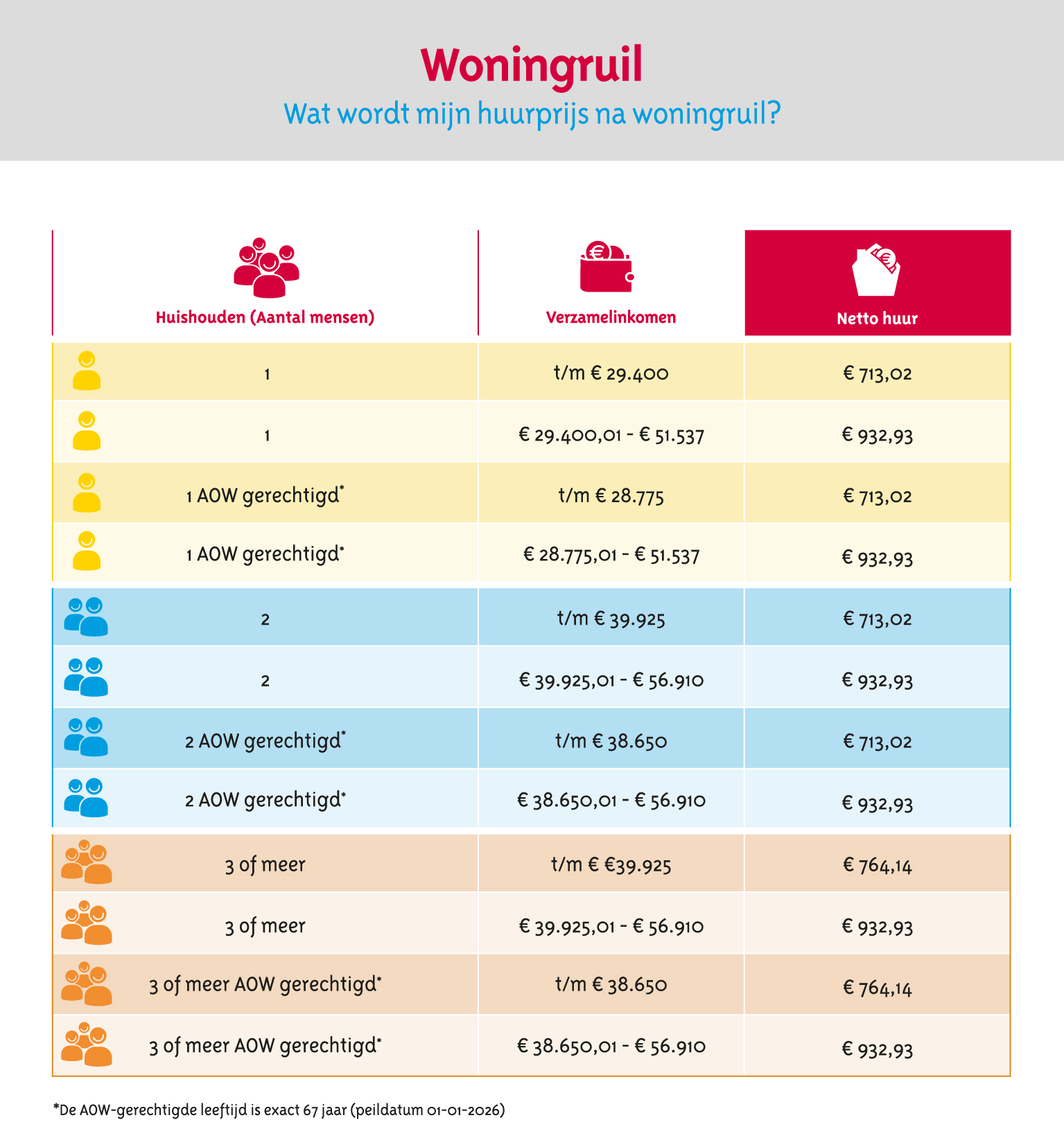 Bekijk deze tabel als het gaat om een sociale huurwoning. De bedragen zijn onder voorbehoud.