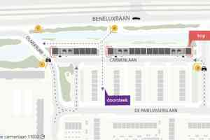 De woningen bouwen we op de strook tussen de Beneluxbaan en de Carmenlaan. Jaren geleden stond hier al een woongebouw.