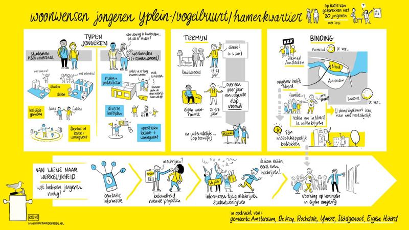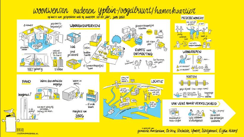 Welke woonwensen hebben 55+ers en starters uit de IJplein/Vogelbuurt met een verhuiswens? Met die vraag voerde Eigen Haard samen met de gemeente en woningcorporaties De Key, Ymere, Rochdale en Stadgenoot gesprekken met bewoners. De wensen zijn samengevat in twee tekeningen. Bekijk ook hier de nieuwsbrief over de panelgesprekken.