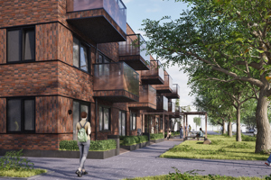 Op het terrein waar vroeger de gymzaal stond aan de Appellaan & Notenlaan in de Populierenbuurt in Amstelveen, bouwen we nu aan 38 sociale huurwoningen.