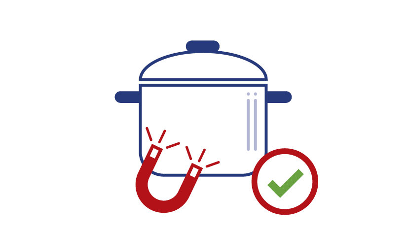 Houd een magneet onder je pannen. Blijft het plakken? Dan kun je de pan gebruiken voor inductie.
