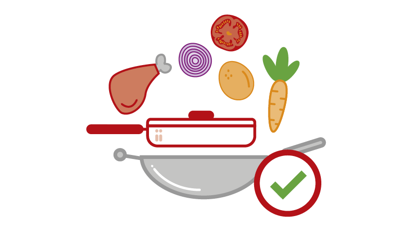 Tips om zuinig te koken: Deksel op de pan, verwarm niet meer water dan je nodig hebt en gebruik kleine pannen.