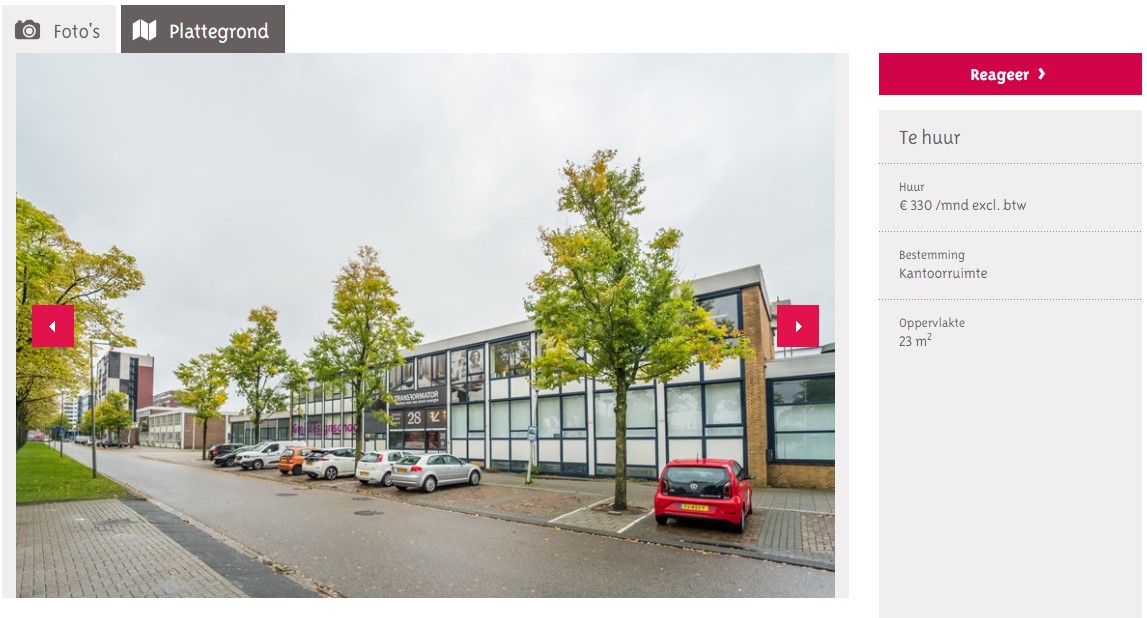Je ziet op onze website een specifieke bedrijfsruimte waar je geïnteresseerd in bent. Je kunt een reactie achterlaten door op de knop ‘reageer’ te klikken. Vervolgens vul je je gegevens in.