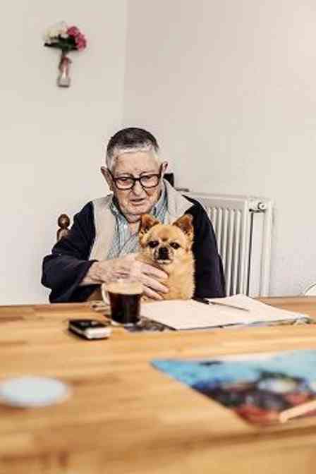 ‘Ik heb alles bij elkaar: woonkamer, keuken, slaapkamer en badkamer. Ik hoef geen trap meer op en dat is fijn, want mijn benen laten het afweten. Een keer per week komt er een schoonmaakster die mijn woning superschoon houdt. De rest van de week kan ik deze kleine woning makkelijk zelf schoonhouden. Een winkelcentrum met veel winkels ligt op maar tien minuten afstand. En de buurtgenoten zijn van mijn leeftijd. We drinken wel eens koffie samen.’